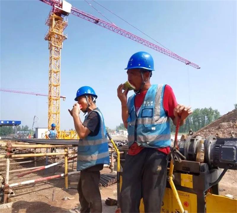 7月底的宜章和西安,炎炎烈日,酷暑难耐,宜章项目、长安项目和高陵项目的参建员工头顶烈日,坚守岗位,挥汗如雨,抢抓工期。生态环境公司纪检委员、副总经理、工会筹备组组长秦剑直奔一线,亲手将藿香正气水、西瓜、矿泉水等防暑降温物资送到一线员工手中,并叮嘱项目管理人员要高度关注员工的身体情况,确保员工身体健康;要加强高温露天作业的检查力度,绷紧安全弦,务必确保施工安全;要结合项目工期,落实高温作业有关要求,动态调整好作业时间,组织好施工生产。